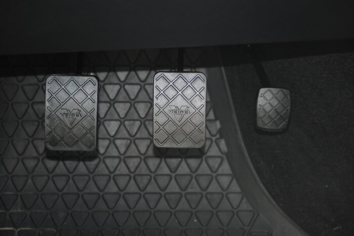 Kui piduripedaal (keskel) ei kanna enam jõudu üle, võib pidurisüsteemis olla õhku
