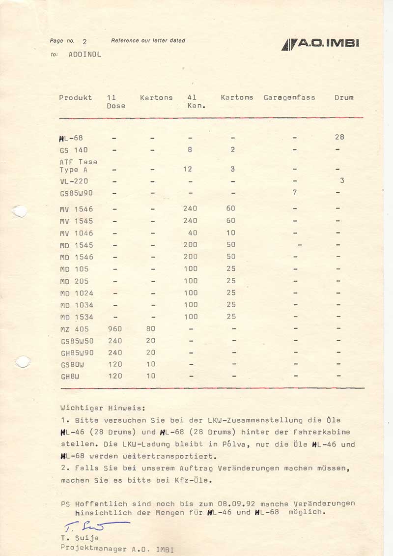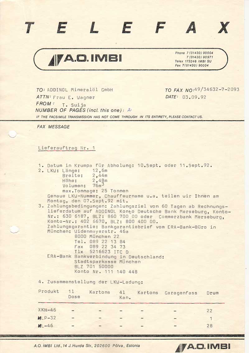 Eesti pinnale jõuab esimene Addinoli õlikoorem. Importijaks A.O. IMBI Põlvas.