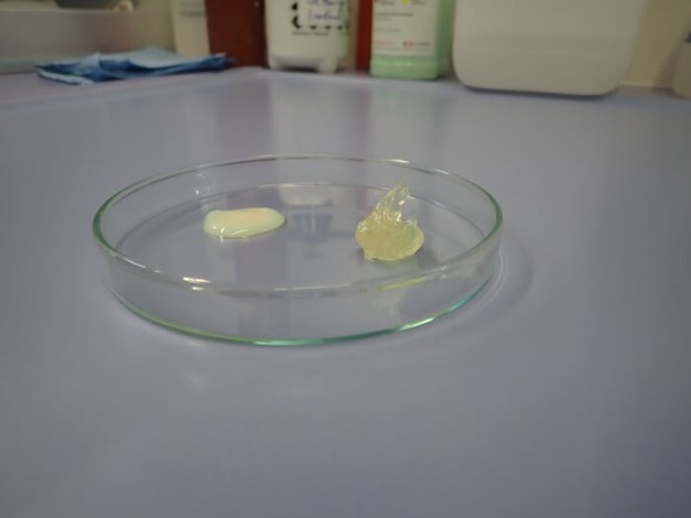 Vasakul poolvedel määre, mis kuulub konsistentsi klassi NLGI 00 ja selle kõrval paremal tahke määre, mis kuulub konsistentsi klassi NLGI 2