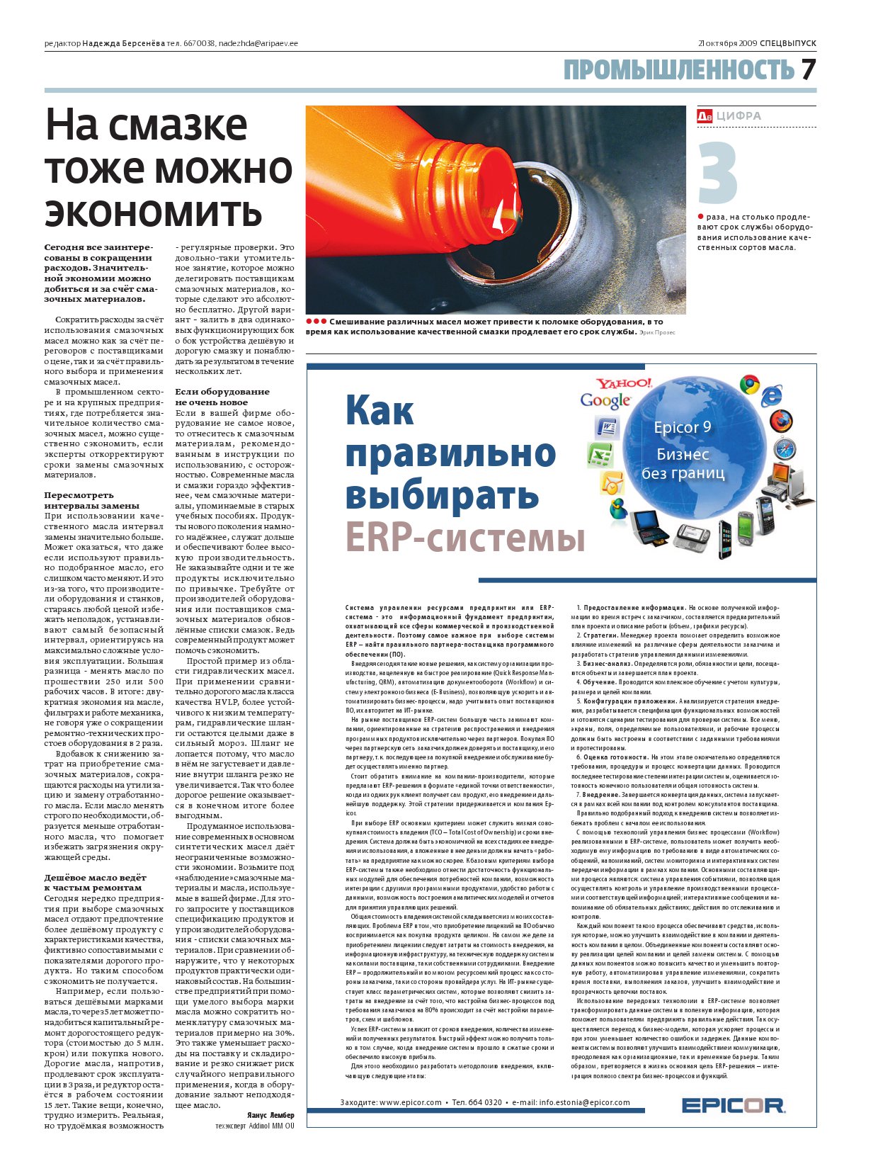cтатья опубликована в газете «Äripäev», рубрика «Промышленность» 03/09/2009